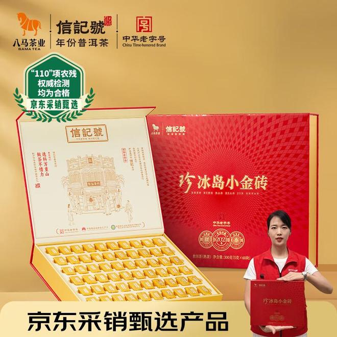 八马茶业信记号中华老字号 普洱茶冰岛小金砖云南熟普300g 2021年礼盒茶叶